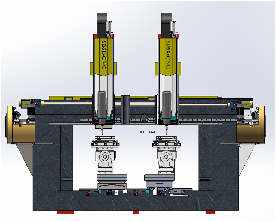 數(shù)控系統(tǒng)(新代220MB-5 ); X1X2軸(7.5KW 48Nm)伺服電機(jī); Y1Y2軸(5.9KW 28.4Nm)伺服電機(jī); Z1Z2軸(5.5KW 35Nm)伺服電機(jī)、帶抱閘; B1B2軸(5.9KW 28.4Nm)伺服電機(jī); B3B4軸(5.9KW 28.4Nm)伺服電機(jī); C1C2軸液壓控制旋轉(zhuǎn); 2-主軸電機(jī)15-18000; |