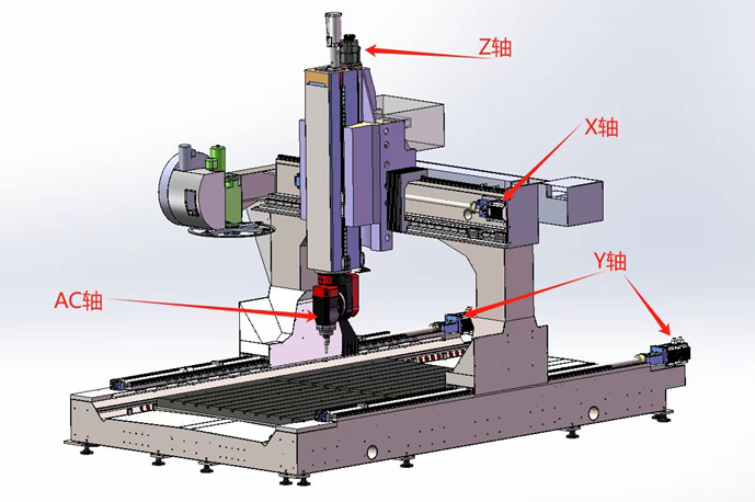 - 運(yùn)動方式為Y軸龍門前后運(yùn)動,X軸機(jī)頭左右運(yùn)動,Z軸主軸上下運(yùn)動,A軸可±110·旋轉(zhuǎn)、C軸可±360·旋轉(zhuǎn)。
