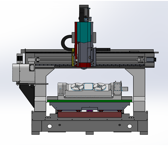 1、SDSK1780YIW-2R-BT30機(jī)型是專門為客戶量身定做的AC雙工位搖籃五軸加工中心;定梁式龍門結(jié)構(gòu); 運動方式為Y軸工作臺前后移動,X軸機(jī)頭左右移動,Z軸主軸上下移動,工作臺上配AC雙工位搖籃五軸轉(zhuǎn)臺,A軸圓盤工作臺可擺動角度±120°,2C軸圓盤工作臺可轉(zhuǎn)動角度360°