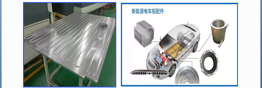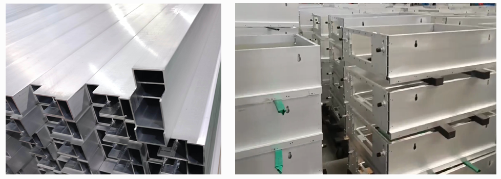 型材加工中心進行電池托盤邊梁切削、雕銑等加工
