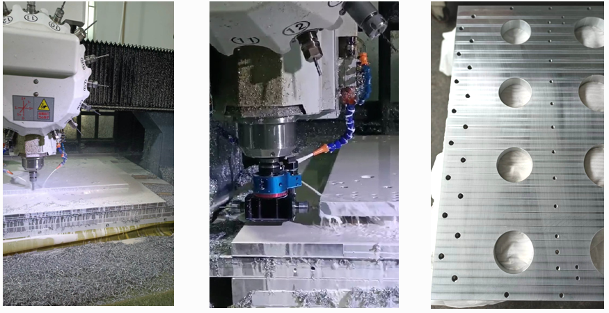 龍門加工中心對自動化設備大鋁板進行雕銑、鉆孔、攻牙、切削等加工