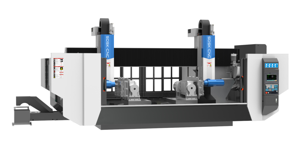 1、SDSK1000WL-ZYB-2-BT40機(jī)型是專門為客戶量身定做的雙頭雙通道+雙主軸擺頭+雙五軸搖籃轉(zhuǎn)臺的專用六軸數(shù)控五面體龍門加工中心,定梁式龍門結(jié)構(gòu)。